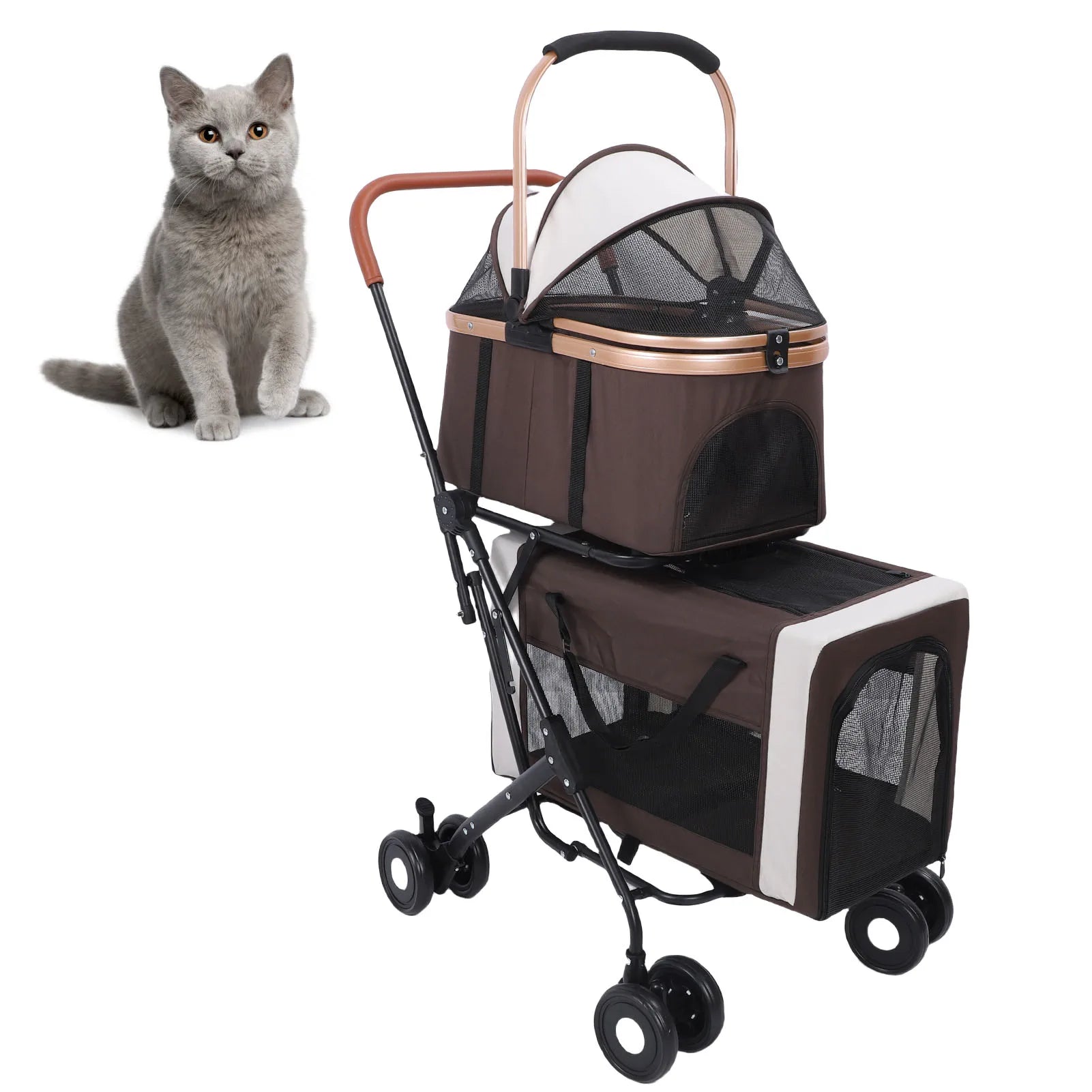 Double Pet Stroller – Lightweight Foldable 4-Wheel Dog & Cat Travel Carrier | Detachable Portable Pet Cart