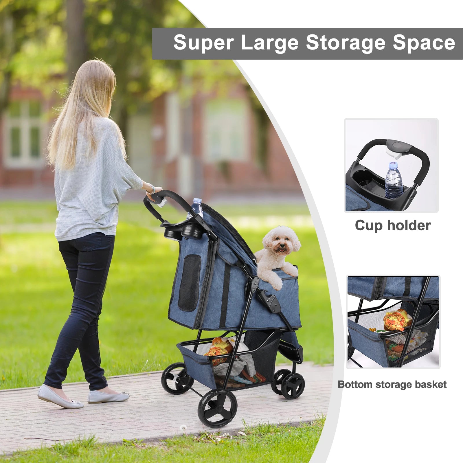 Foldable Luxury Pet Stroller – Three-Wheeled Universal Dog Cart for Outdoor Travel