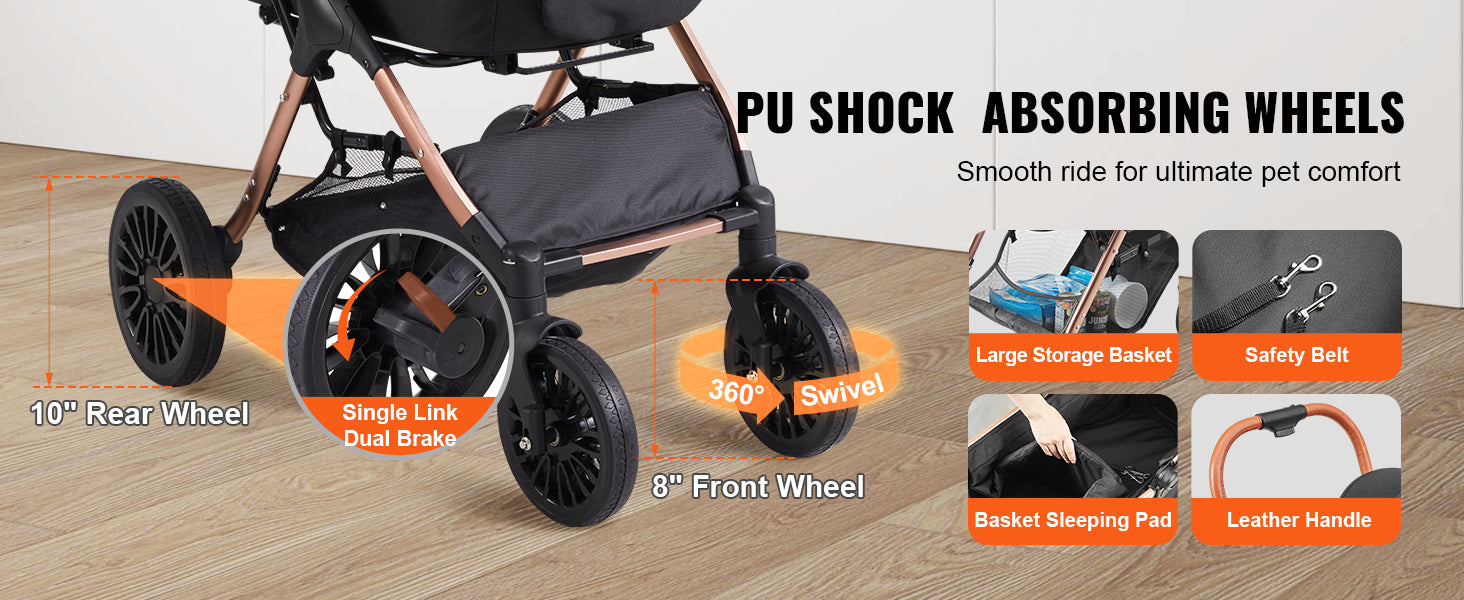 Take your pets on the go with the SucceBuy 66 lbs Pet Stroller. Built for small to medium dogs, this foldable stroller features a detachable carrier, secure brakes, and a spacious storage basket. Designed for comfort, safety, and portability—perfect for outdoor walks, shopping, or vet visits.